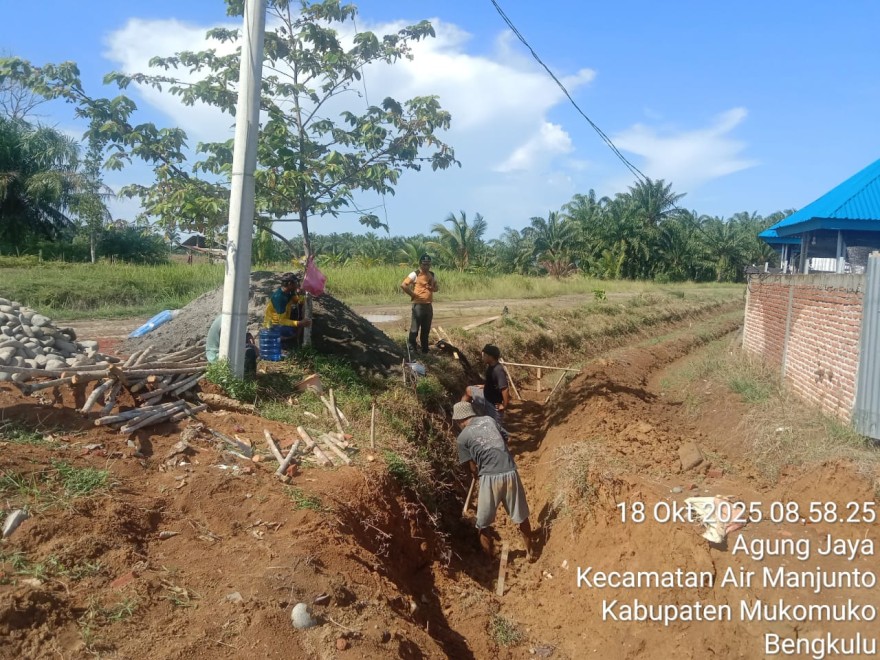 Agung Jaya, 18 Oktober 2025 — Kepala Desa Agung Jaya, bersama perangkat desa dan tim pelaksana kegiatan (TPK), melaksanakan Inspeksi Mendadak (SIDAK) ke sejumlah titik lokasi pembangunan yang bersumber dari Dana Desa Tahun Anggaran 2025.